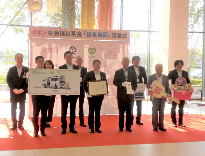 イオン社会福祉基金は、労使双方の皆様が協調して行う地域社会への奉仕活動の一環として1977年に設立され、障がいを持つ方々の社会活動の参加促進や福祉向上に貢献することを目的に活動を行っており、今回で延べ119台の福祉車両を贈呈しているそうです。